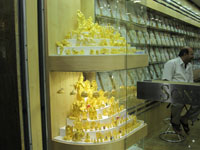 We walk by a traditionally dressed Arab male, keffiyeh, sandals and all as he smokes a very large cigar. He gazes over at me as I walk by him, ever so casually. Expecting a disapproving glance from him, he instead looks back down at his newspaper with the same emotionless face, aware that it is we who are the outsiders.